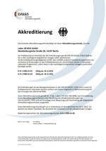 Die Akkreditierung bestätigt das Vohandensein eines Qualitätssicherungssystems und insbesondere die fachliche Kompetenz aller Mitarbeiterinnen und Mitarbeiter.