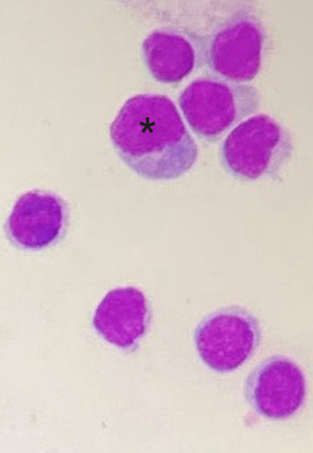 Abbildung 2. Lymphozyten mit einer aktivierten Form (*)