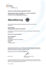 Die Akkreditierung bestätigt das Vohandensein eines Qualitätssicherungssystems und insbesondere die fachliche Kompetenz aller Mitarbeiterinnen und Mitarbeiter.